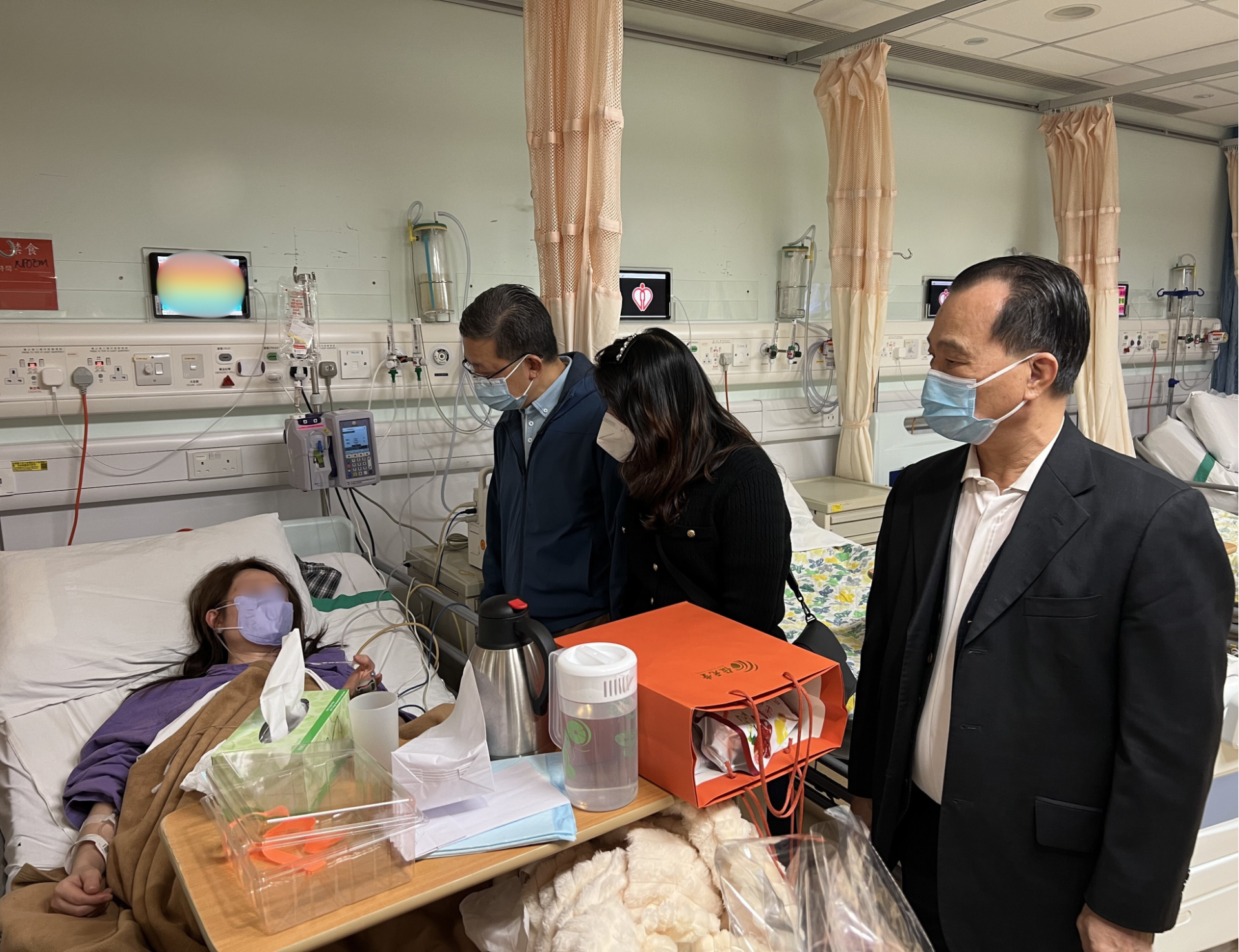 11月27日傍晚,深總基金會主席兼常務副會長陳健平、常務副會長兼常務副秘書長陳秋嫻、常務副會長何志強一行,前往將軍澳醫院探望在此接受治療的受災鄉親,了解傷情與生活所需,轉達深總全體同仁的關懷與問候並送上慰問金,鼓勵其安心養傷,早日康復。